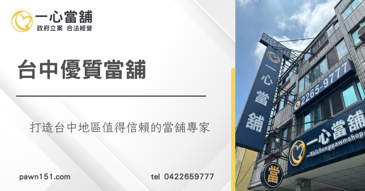 合法當舖專營台中汽車借款,台中機車借款免留車,機車借錢快速小額借貸,誠信為本助民服務,無論是工商週轉、債務整合代償、轉當降息、黃金鑽石、精品名錶、3C家電典當、古董檜木、宗教藝品、土地二胎、房屋二胎免費諮詢,典當質借皆可來店辦理當舖借款。